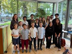 Die jungen Klavierschüler*innen von Frau Dr. Eveline Unruh begeisterten alle mit ihrer Spielfreude und Ausdruck. Auf den schwungvollen Start mit „Oh when the Saints!“ – der einige Zuschauerinnen und Zuschauer zum mitsummen oder gar leisen mitsingen anregte – folgten musikalische Highlights aus Sergej Prokofjews „Peter und der Wolf“, „Cleopatras Lied“ und ein traditionelles russisches Stück. Für Gänsehautmomente sorgte die Gesangseinlage einer kolumbianischen Gesangsstudentin, die mit ihrer warmen Stimme alle in den Bann zog. Eine Interpretation von Schuberts „Das Wandern“ aus „Die schöne Müllerin“ mit Violoncello und Klavier kam ebenfalls gut an.