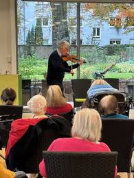 Mal sanft und gefühlvoll, mal lebendig und mitreißend. Mit einem abwechslungsreichen Programm, das Klassik, Folklore und zeitlose Melodien vereinte, nahm Klaus Habermann die Bewohner*innen des Friedensheims am 16. Oktober 2025 mit seiner Geige mit auf eine musikalische Reise.