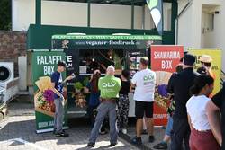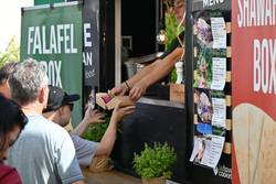 Während der Rest Deutschlands am Mittwoch, den 13. August, an einem der heißesten Tage des Jahres unter der Hitze ächzte, ging es auch im Martinshaus heiß her. Zur Mittagszeit rollte ein Foodtruck auf den Innenhof und heizte die mobile Küche an. Es gab Falafel und Schawarma für die Bewohnerinnen und Bewohner. Wahlweise im Fladenbrot oder als Box. Neugierig stellten sich alle in die Schlange. Manche sogar zweimal, weil es so gut schmeckte.